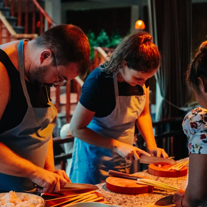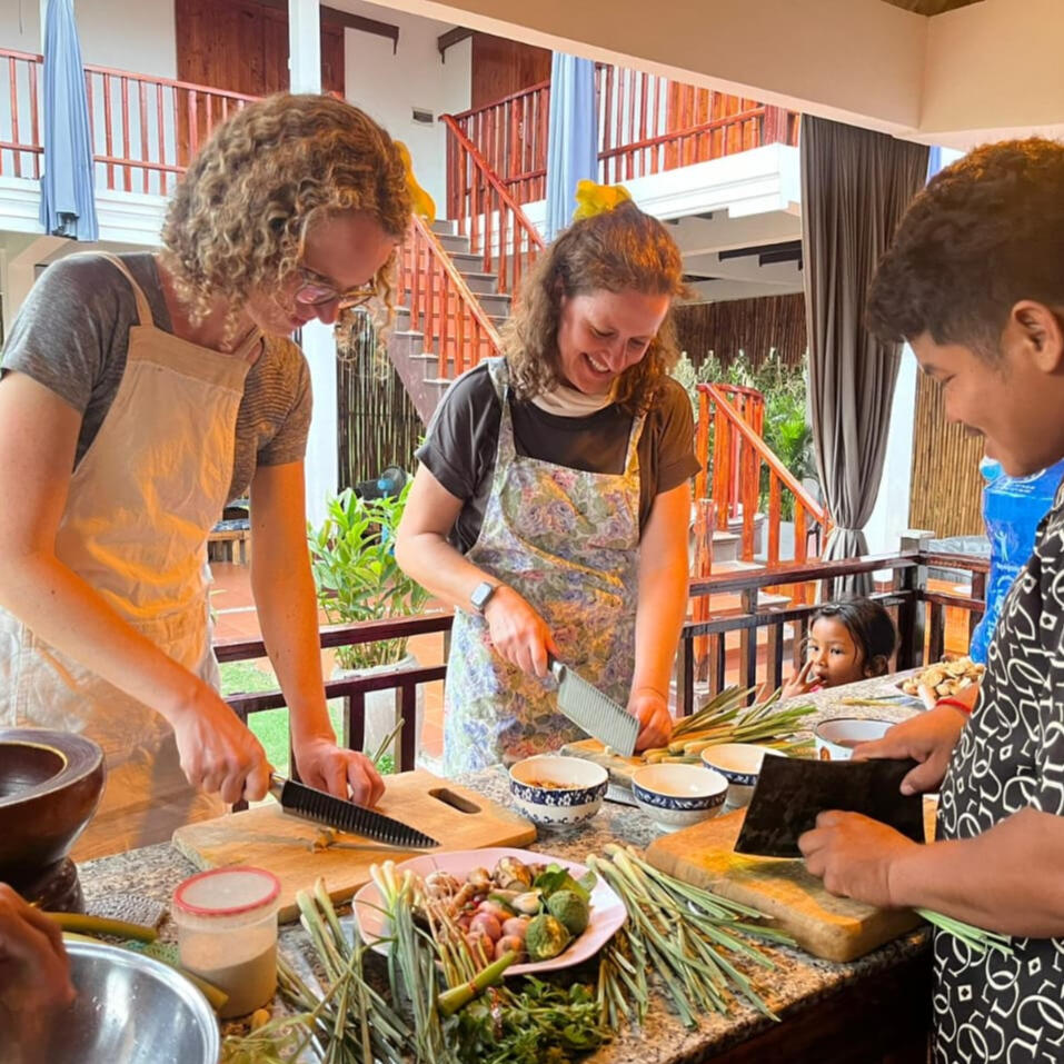 Step into Sophors' countryside kitchen for an authentic cooking experience. Cross the Mekong, explore a market, pick fresh veggies, walk her village path, and learn to master